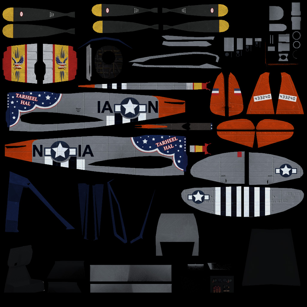 Texture size is 1024 x 1024 and was done in Photoshop CS5. Plane model was done in 3ds Max with a triangle count of 6,590.